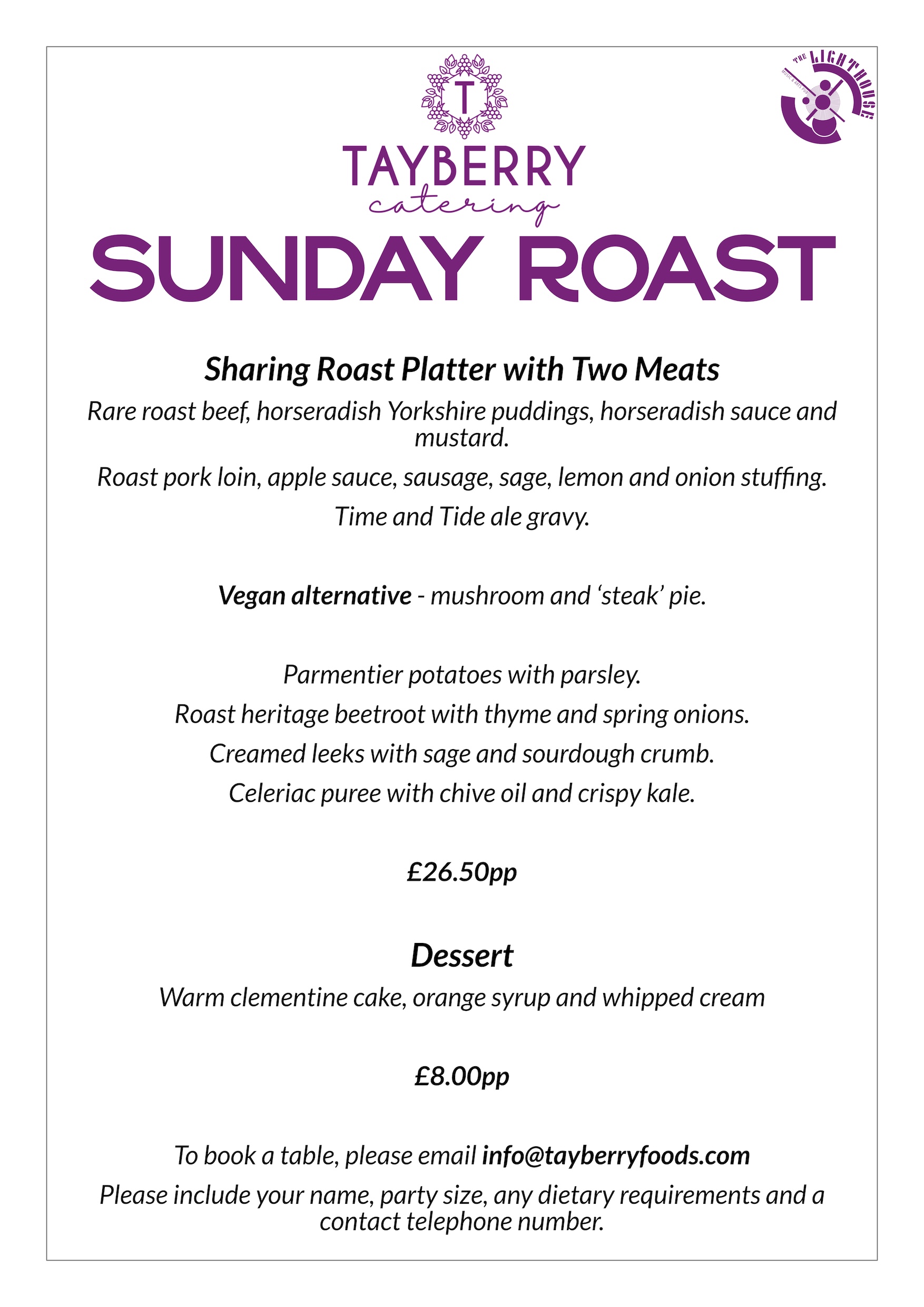 Tayberry’s ethos is to ensure we use the freshest and most local ingredients possible and ensuring we use seasonal produce. Over the years we have built up fantastic relationships with our trusted suppliers who are able to provide us with everything we need.